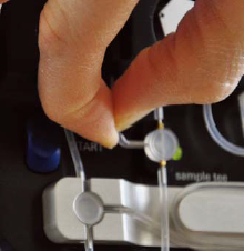 当气泡卡在 tee | 当泵转动时,捏住管路几秒钟后再放开,利用压力可把气泡带走。 |