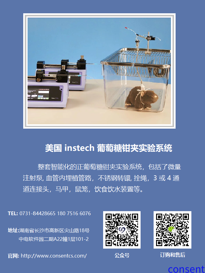 葡萄糖钳夹技术是一种定量检测胰岛素分泌和胰岛素抵抗的方法。葡萄糖钳夹技术首先由 Andres于1966年论述,被认为是现今最新的葡萄糖稳态的测量技术。钳夹试验已经成为评估和鉴别β细胞对于胰岛素反应敏感性的“金标准”方法。高胰岛素—正葡萄糖钳夹技术是目前世界上公认评价机体胰岛素敏感性的金标准,已在基础及临床医学研究领域中得到广泛应用。