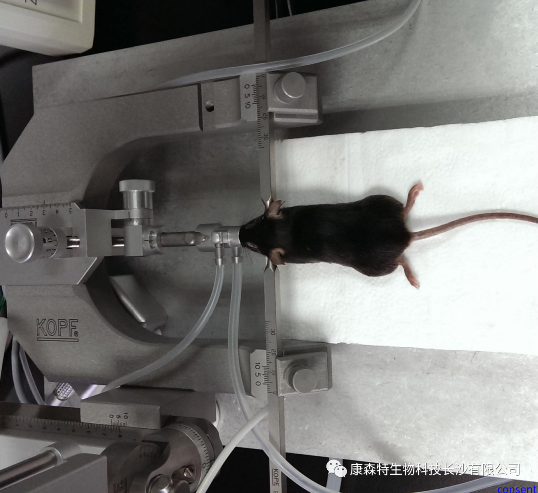 1、动物脑微透析导管植入手术探针预处理:将探针置于肝素钠溶液中,提前用超纯水以1.0μl/min 的流速灌流冲洗20 min,洗脱新探针半透膜上封膜的甘油。