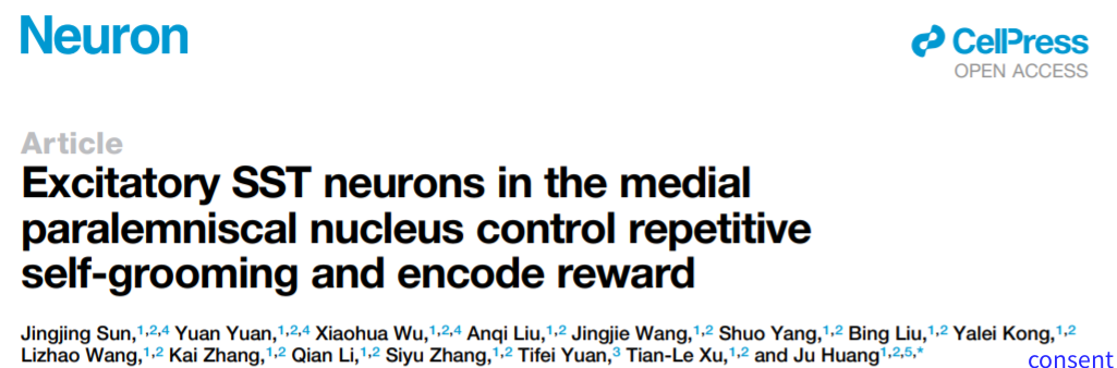 2022年9月6日上海交通大学基础医学院黄菊教授研究团队在Neuron杂志上发表文章揭示了重复刻板行为的奖赏神经环路:CeA➟MPL-STT➟VTA。