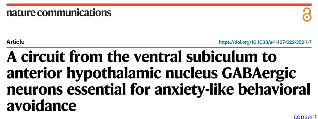 2022年12月3日中国科学院脑科学与智能技术卓越创新中心(神经科学研究所)许晓鸿研究组发表文章揭示海马-下丘脑神经环路调控焦虑样趋避行为。