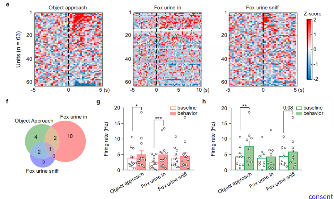 本文揭示了AHN区域抑制性神经元可同时响应捕食者气味和焦虑行为刺激,抑制该神经元后可减少焦虑样的逃避行为。