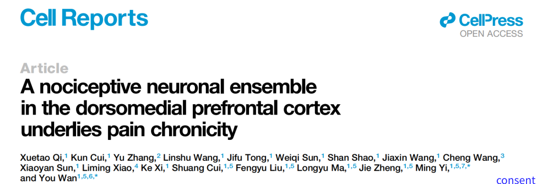 2022年12月13日北京大学基础医学院万有研究团队揭示了dmPFC存在一类伤害性神经元群,编码疼痛信息。
