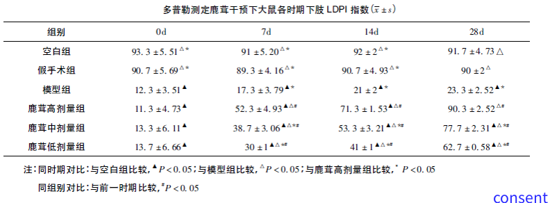 激光多普勒血流仪评价鹿茸对于大鼠下肢动脉硬化闭塞症的疗效