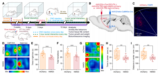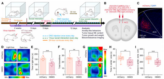 图1、抑制ACC-Glu神经元活性阻断社交的抗肿瘤作用