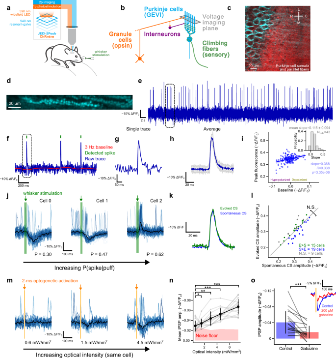 JEDI-2Psub 体内双光子电压成像和光遗传学揭示了小脑中阈值下膜电位动力学