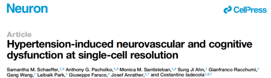 2025年11月14日威尔康奈尔医学院Costantino Iadecola团队在Neuron杂志发表文章利用单细胞测序技术揭示了早期高血压中内皮细胞、少突胶质细胞前体细胞及中间神经元是最为敏感的细胞类型。