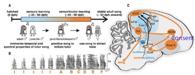 歌曲学习和相关神经回路概述(图源参考文献)