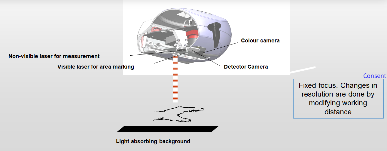 激光散斑成像原理:目标受到激光束照射时,反射后的激光形成随机干扰图像(包括亮区和暗区),该图像称为激光散斑图。如果被测目标静止,激光散斑图也保持不变。如果被测物体发生移动,例如组织中的红细胞运动,则激光散斑图会随之波动。激光散斑图的变化速度取决于监测区域内目标移动速度;目标移动速度越快,散斑图变化越明显。散斑变化速度以散斑对比度量化,而对比度与血流相关;这就是激光散斑技术用于血流灌注量评估的工作原理。