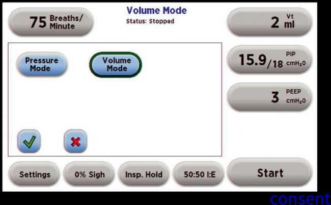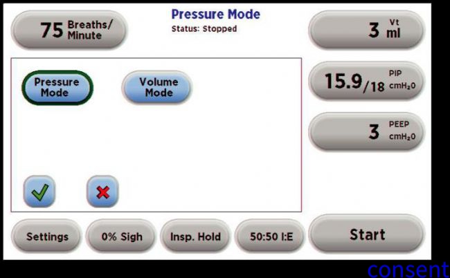 如果选择压力控制模式,初始的泵气压力,一般初始值为375pxH2O。为防止潮气量过大,损伤动物肺。一般最大压力为500pxH2O。