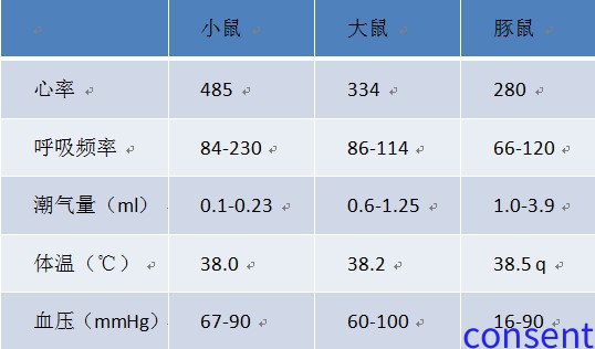 一、实验动物部分生理参数,作为动物生理参数实验监护的参考值: